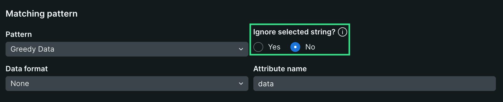 Pour les sous-chaînes que vous souhaitez éviter d'analyser et qui incluent des valeurs dynamiques, assurez-vous de les définir comme sous-chaînes dynamiques en les sélectionnant et en modifiant leur configuration sur Yes.