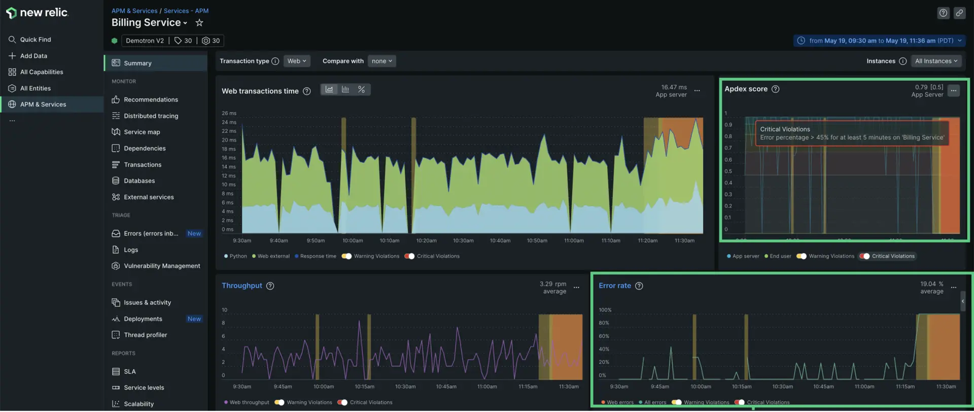 - APMエージェントとInfrastructureエージェントに別のライセンスキーが使用されている場合、APM Summaryページを表示するユーザーは、両方のアカウントにアクセスできる必要があります。